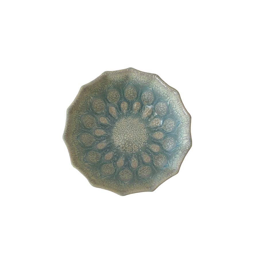 Størrelse: ca 4 cm høj og 10 cm i diameter.