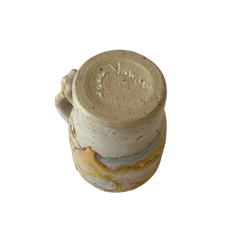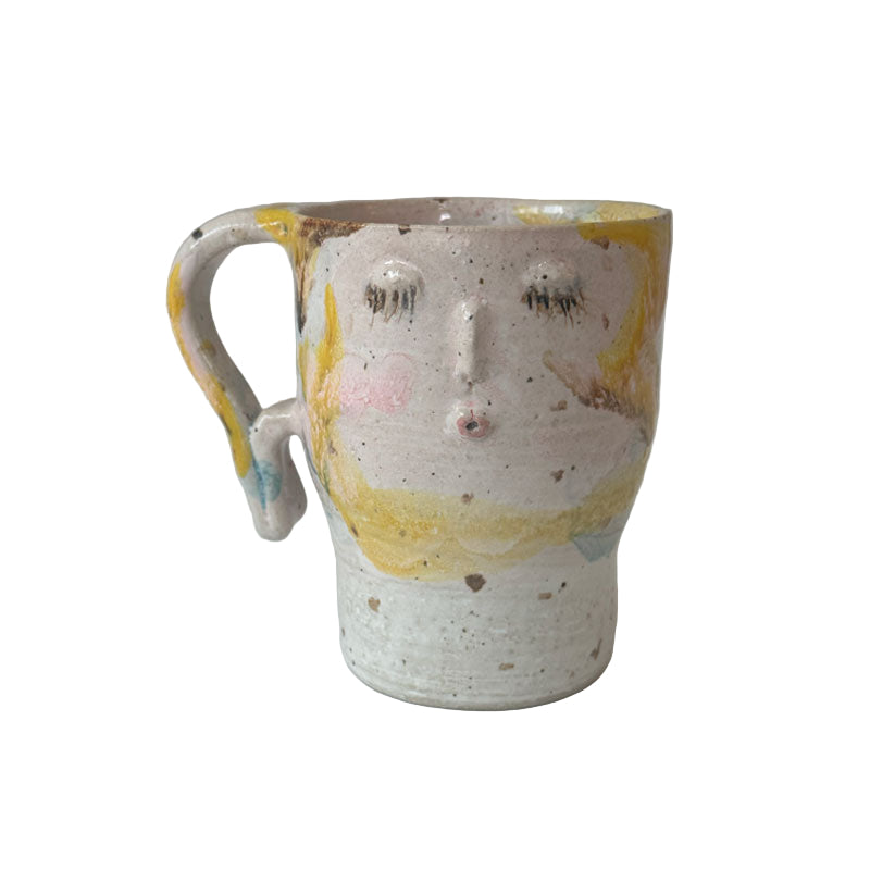 Nyd din kaffe eller te i en unik, håndlavet kop fra keramiker Mona Vander. Hver kop er skabt i stentøj af høj kvalitet og bærer hendes karakteristiske ansigt, samt smukt hank, som giver et kunstnerisk og personligt præg.