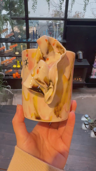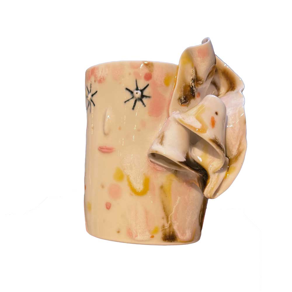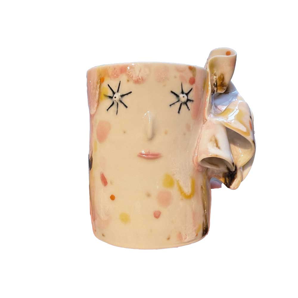Nyd din kaffe eller te i en unik, håndlavet kop fra keramiker Mona Vander. Hver kop er skabt i stentøj af høj kvalitet og bærer hendes karakteristiske ansigt, samt smukt hank, som giver et kunstnerisk og personligt præg.