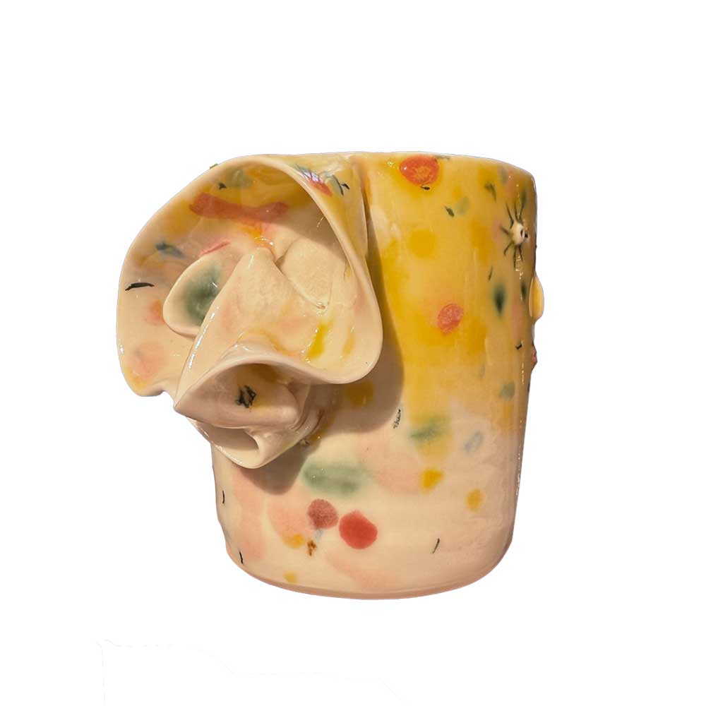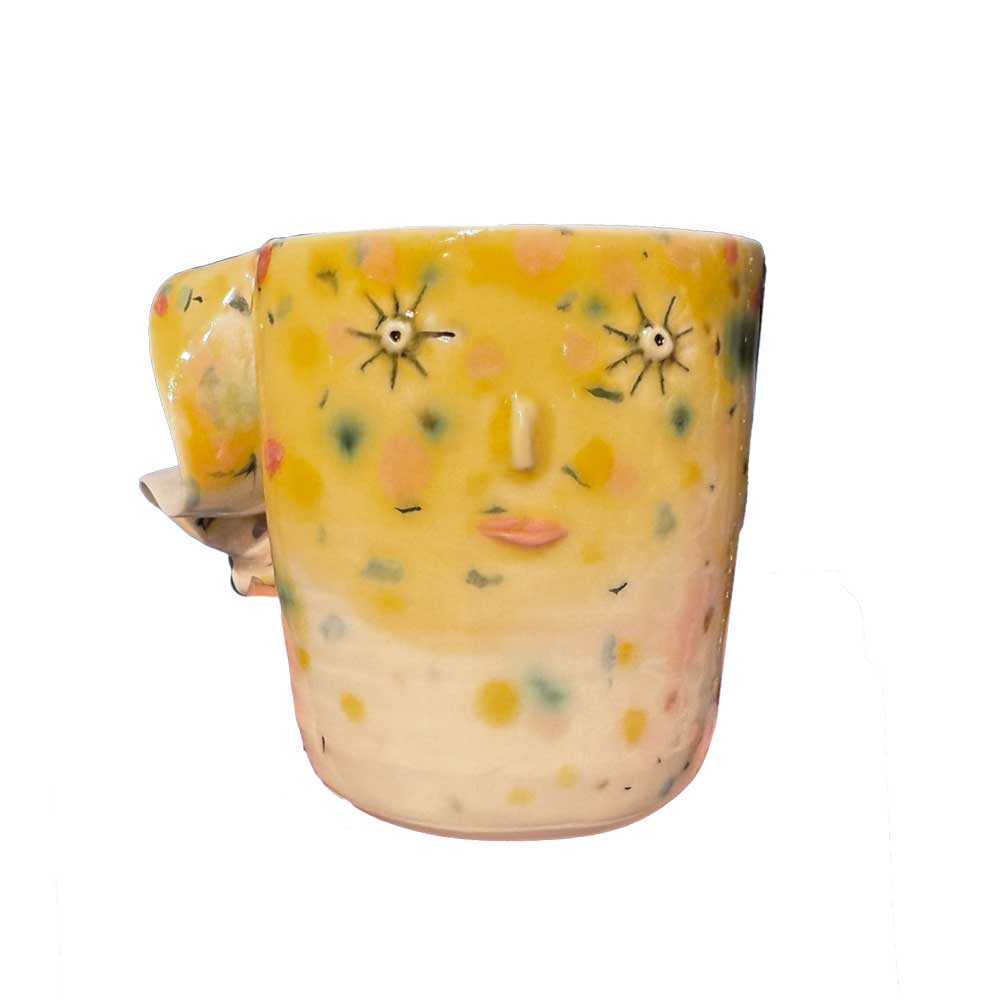 Nyd din kaffe eller te i en unik, håndlavet kop fra keramiker Mona Vander. Hver kop er skabt i stentøj af høj kvalitet og bærer hendes karakteristiske ansigt, samt smukt hank, som giver et kunstnerisk og personligt præg.