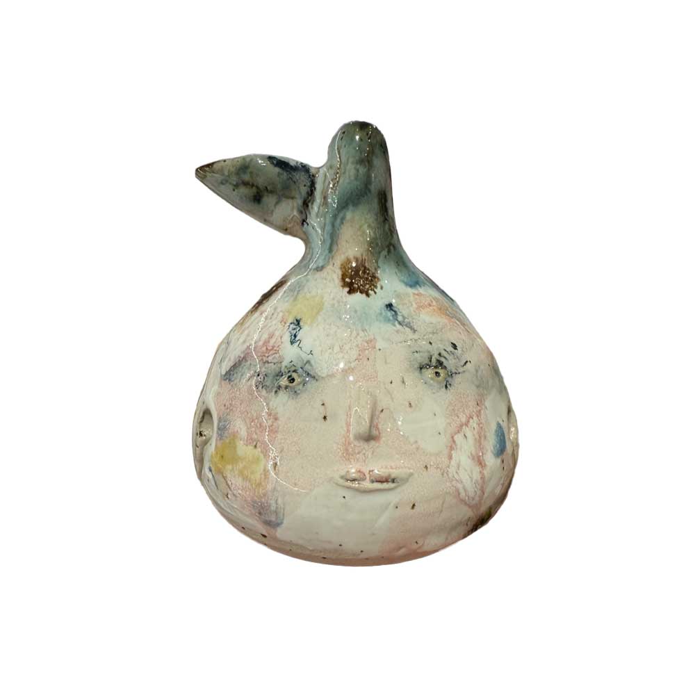 Frugt bjælde. `nuttet og buttet` Hånddrejet stentøj. og unik glasering. Der er en lille lerkugle indeni, så bjælden har en lille lyd.