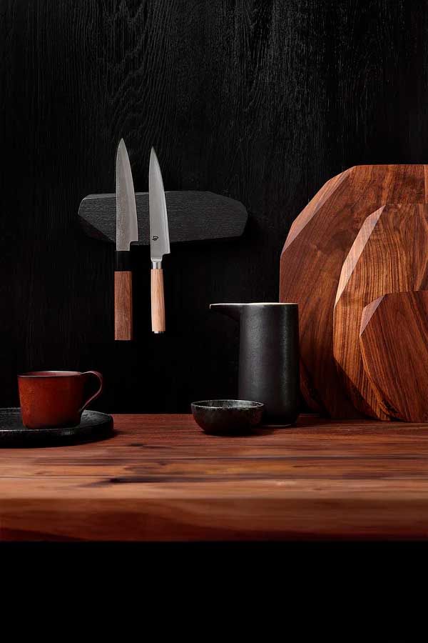 Knivene er formodentlig det hyppigst brugte i et køkken, og netop brugervenligheden er tænkt ind i designet. Knivmagneten sidder på en stålskinne og “svæver” tre centimeter fra væggen, hvilket gør det let at få fat om håndtaget på knivene. Samtidig er det en knivmagnet i træ, hvilket sikrer, at dine knive ikke sløves af knivmagneten.