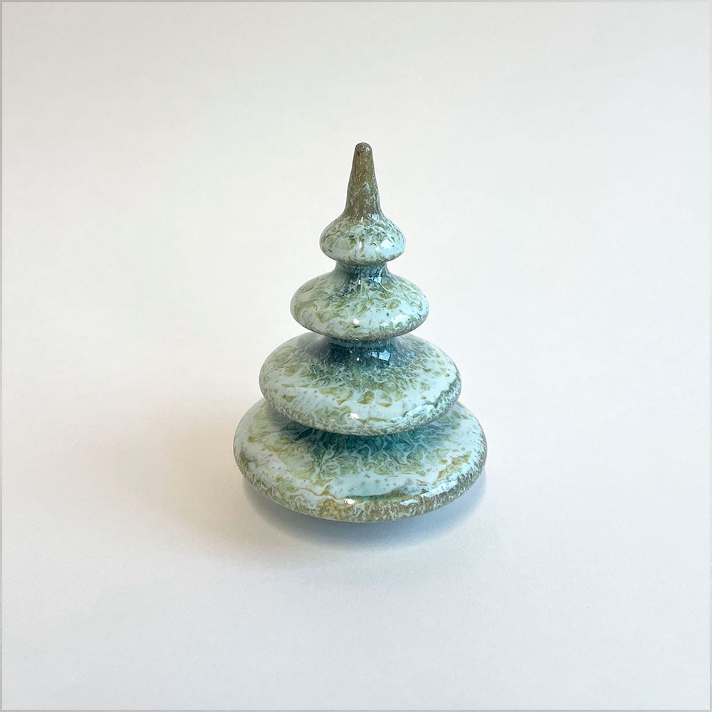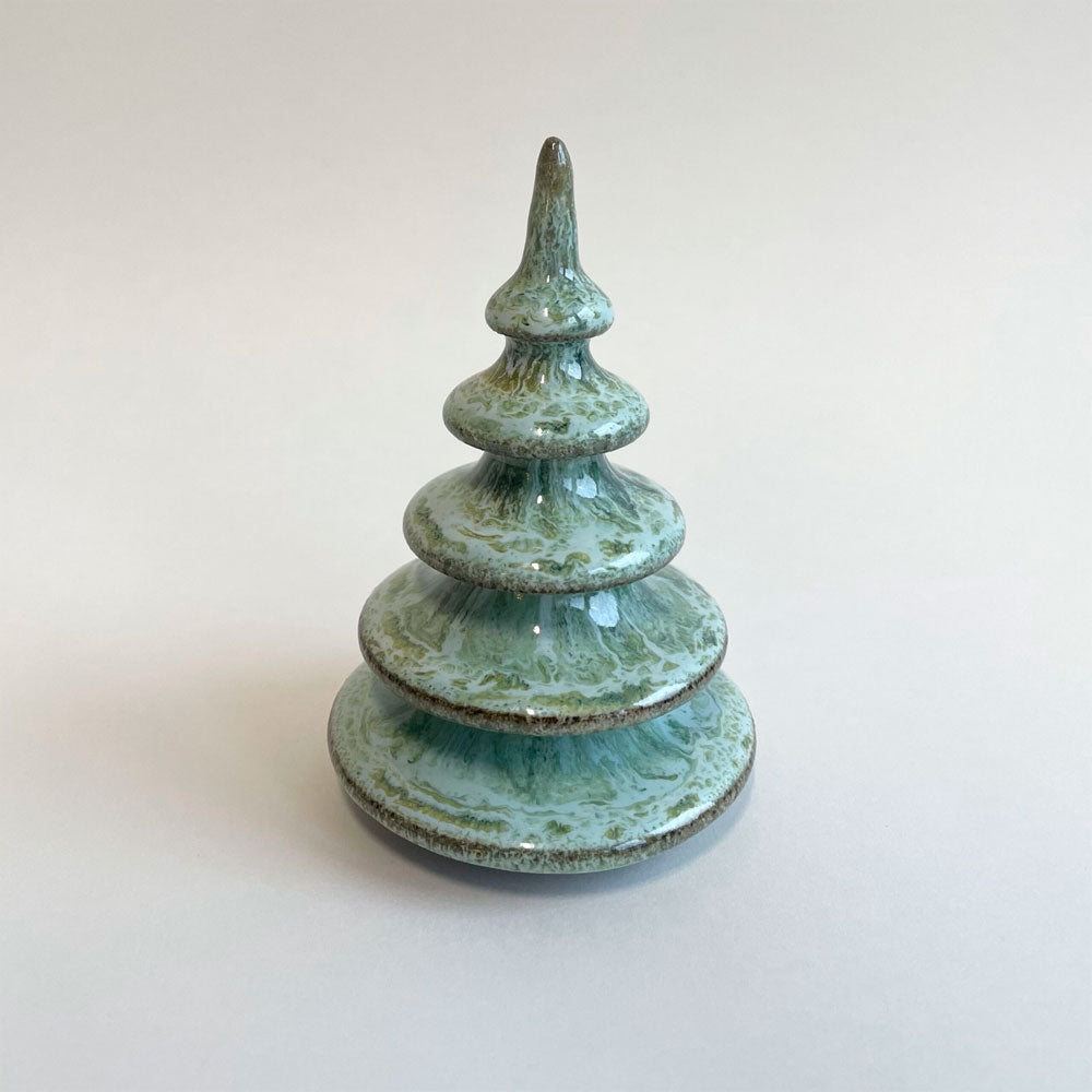 Da hvert træ er hånddrejet og håndglaseret, vil der være små variationer i både størrelse, form og farve – det er netop det, der gør dem særlige. Farvespillet i glasuren giver hvert træ sit eget udtryk og gør dem smukke at samle på eller kombinere i små grupper.
