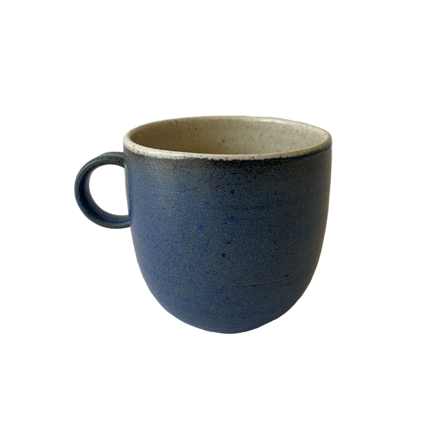 Anna Bystrup arbejder med keramik, hvor form og farve går op i en harmonisk helhed. Den transparente glasur på indersiden fremhæver stentøjets naturlige struktur og gør koppen praktisk til brug i hverdagen – samtidig med, at den er smuk nok til at stå fremme som en del af din indretning.