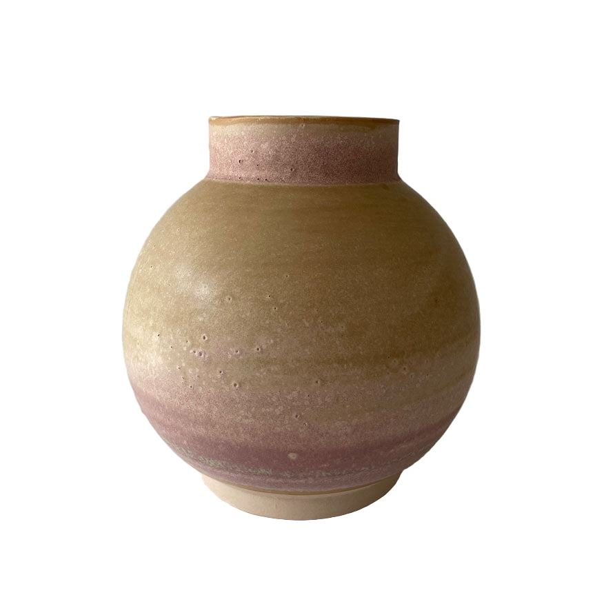 Stor rund vase i mat beige/rosa glasur.