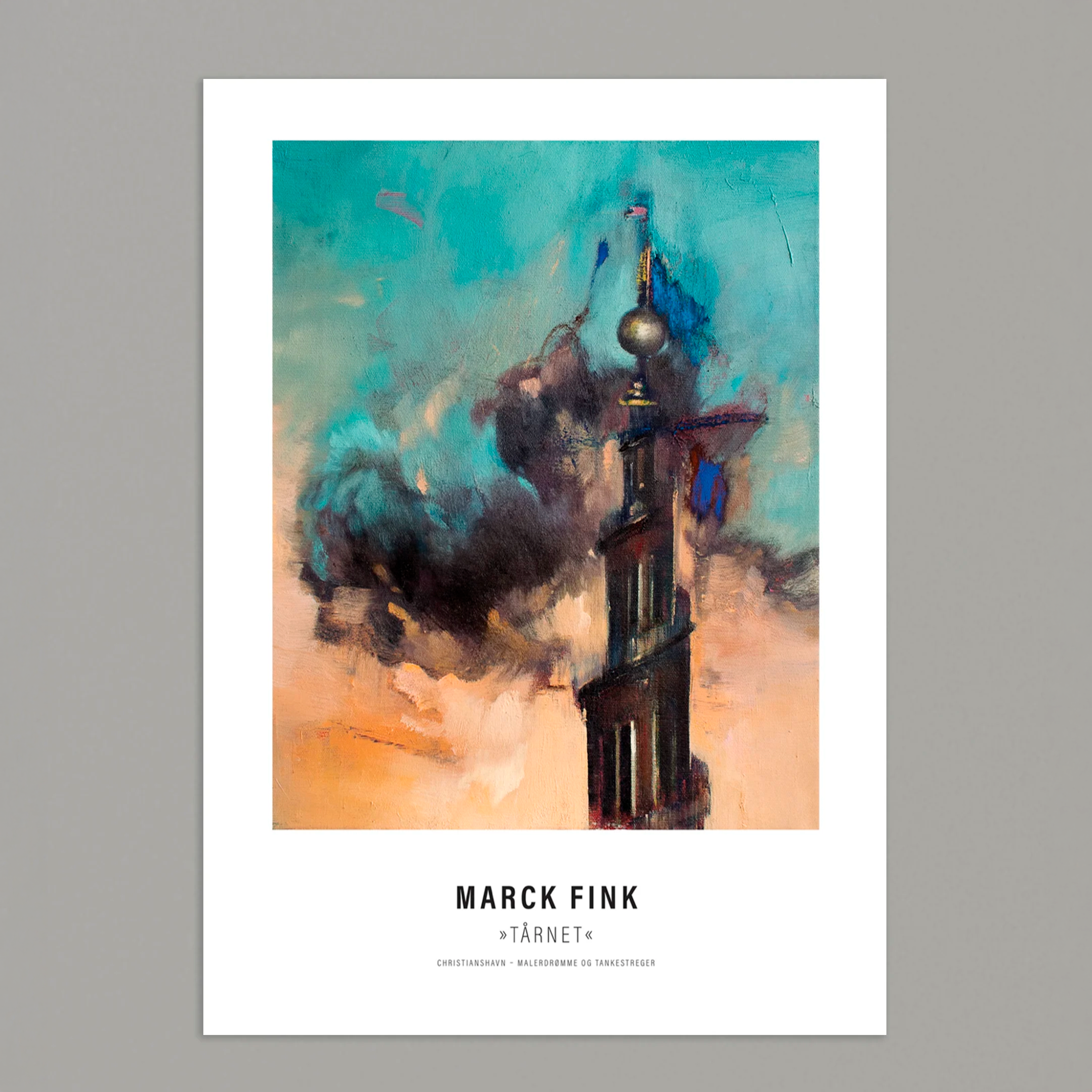 “Tårnet” er en kunstplakat af Marck Fink med motiv af det ikoniske spir fra Vor Frelsers Kirke på Christianshavn. Værket er en del af serien “Malerdrømme og tankestreger”, hvor København fortolkes i et enkelt og let abstrakt formsprog.