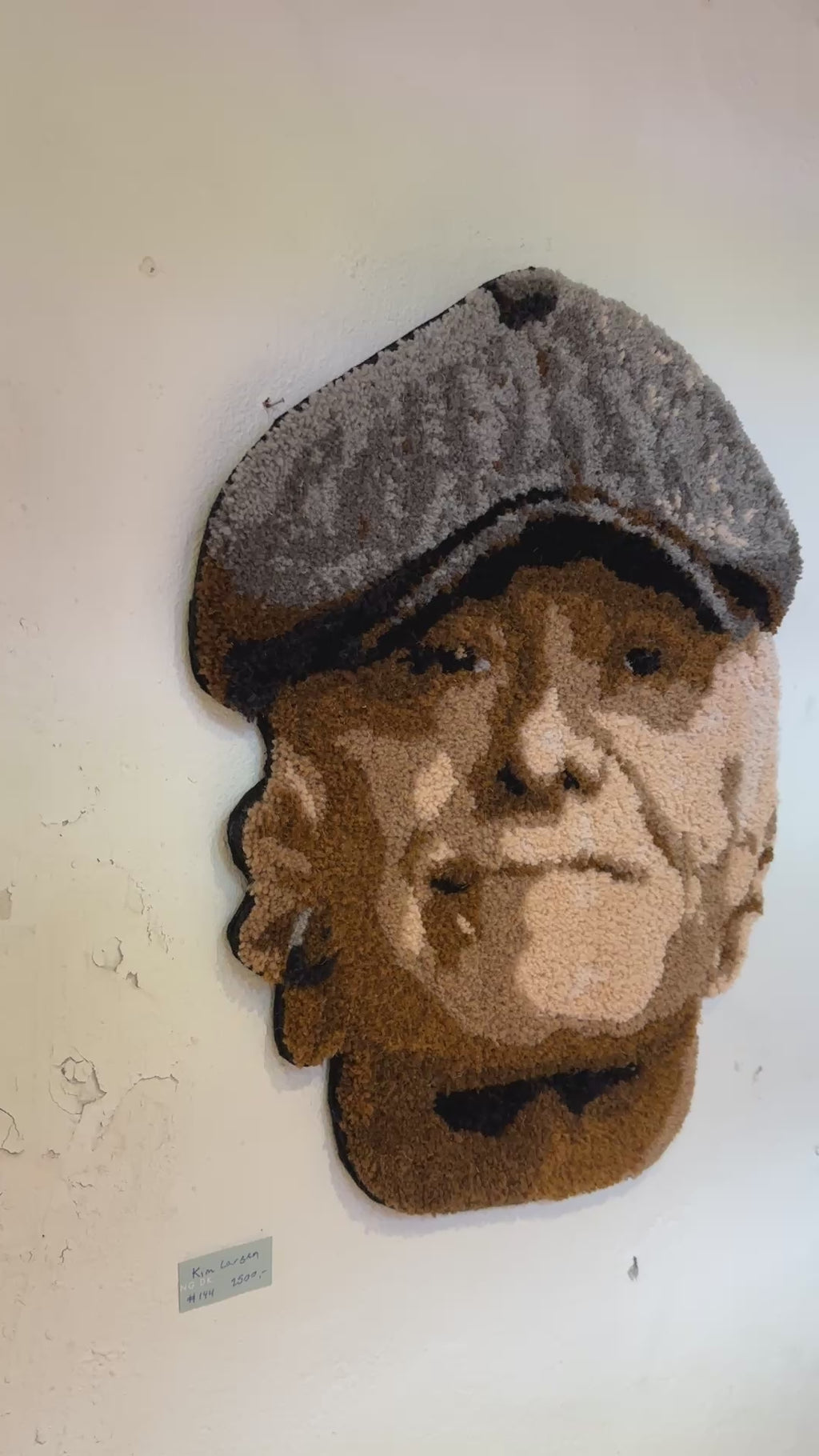 Tuftet garnportræt af Danmarks nationalskjald og spillemand Kim Larsen.