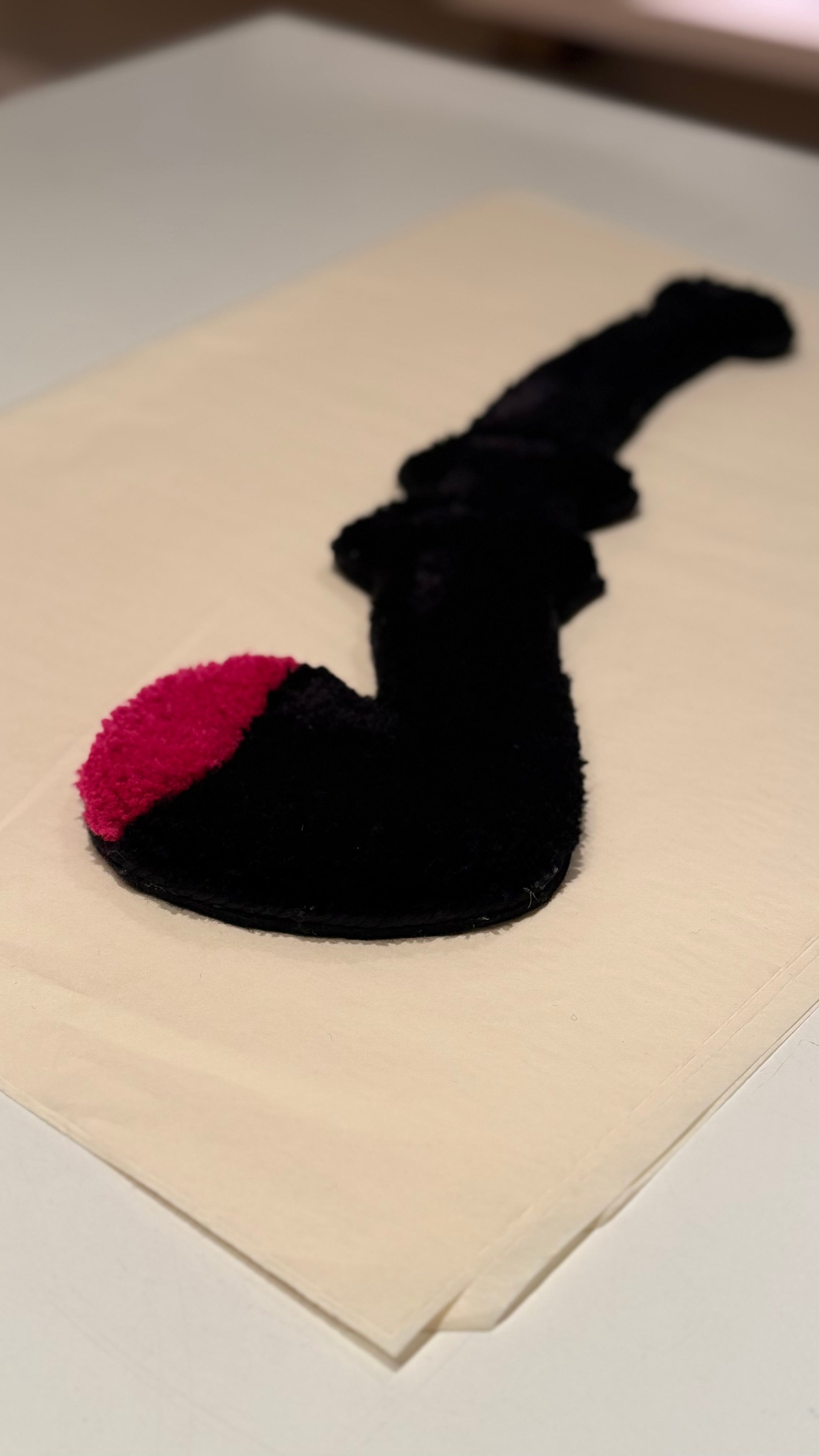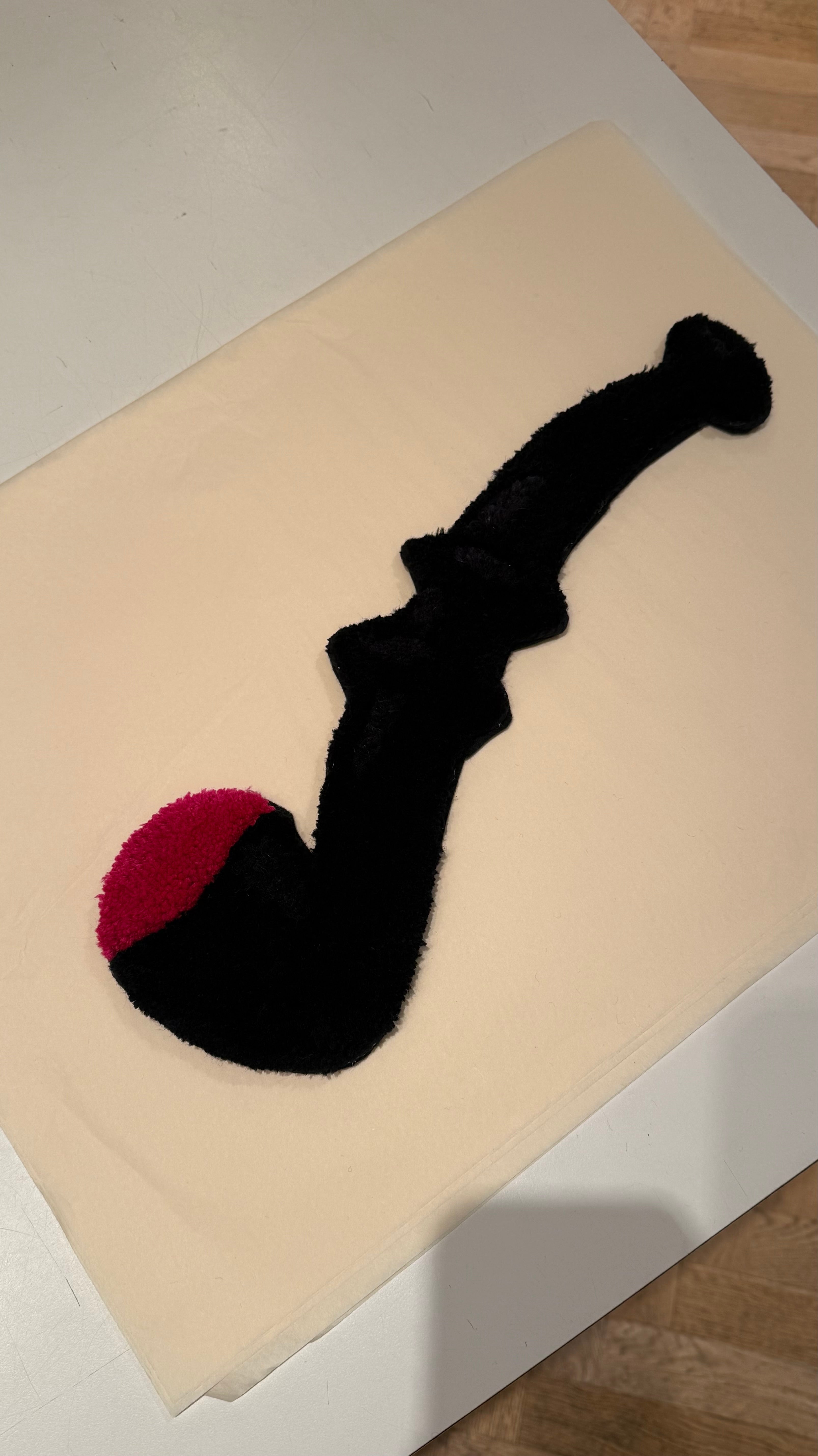 Hvert tuftede værk er skabt i hånden, og derfor er ingen to helt ens. Denne unikke tuftede vægdekoration fungerer både som kunstværk og dekorativt element i indretningen. Motivet af lakridspiben giver et legende og karakterfuldt udtryk og passer perfekt i stuen, køkkenet, entréen eller andre rum, hvor du ønsker et personligt og kunstnerisk præg.