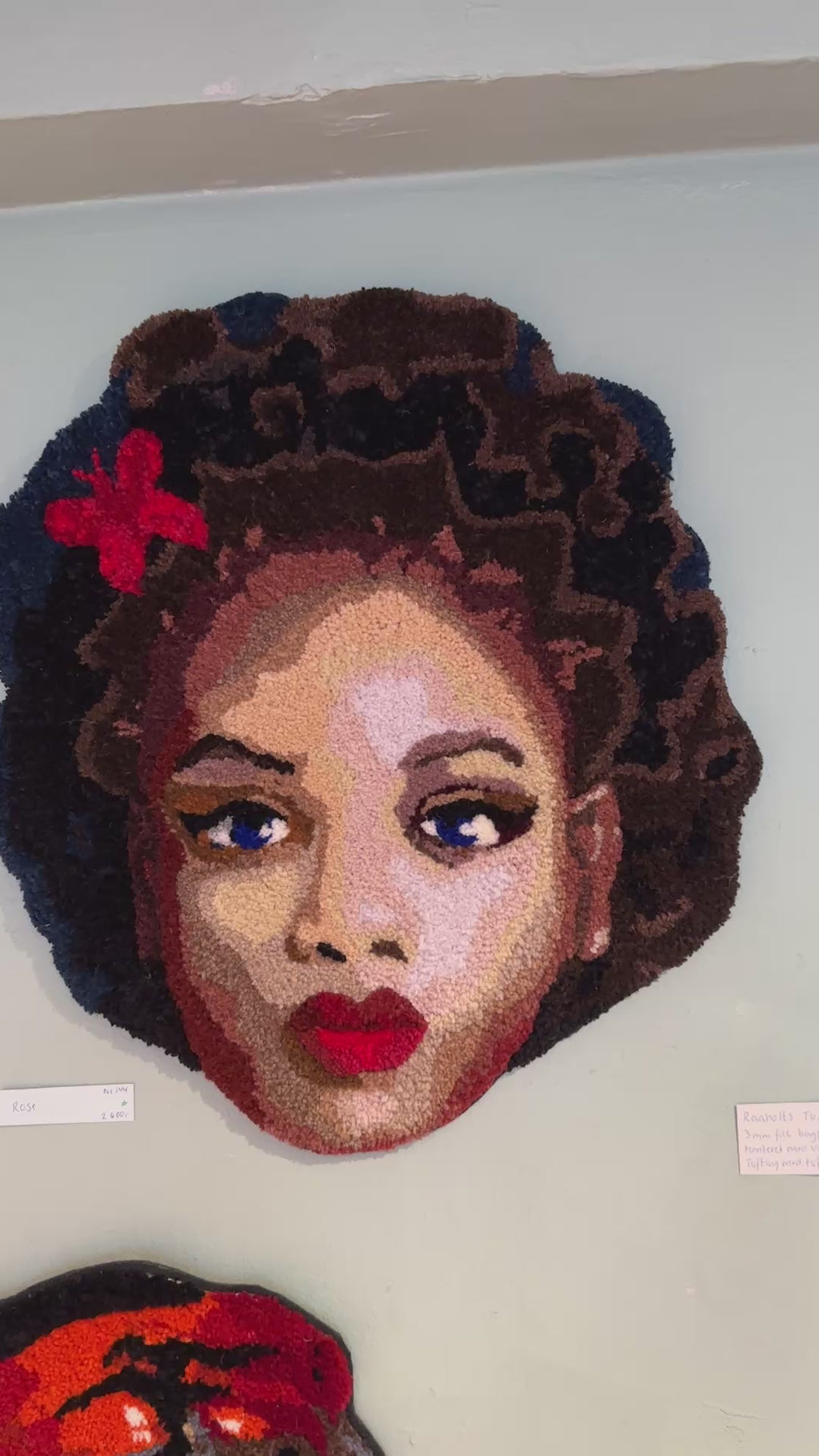 Smuk, tuftet, ung kvinde. Rose vægtæppe - Tuftet ansigt af smuk kvinde
