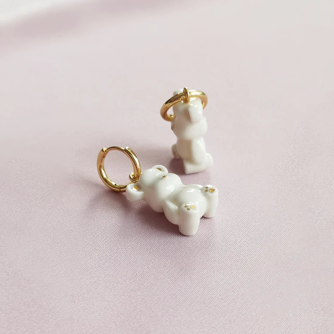 Porcelæns Øreringe med Hvide Teddybjørne